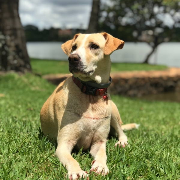 A Cacau é uma vira lata resgatada na rua de um abandono.