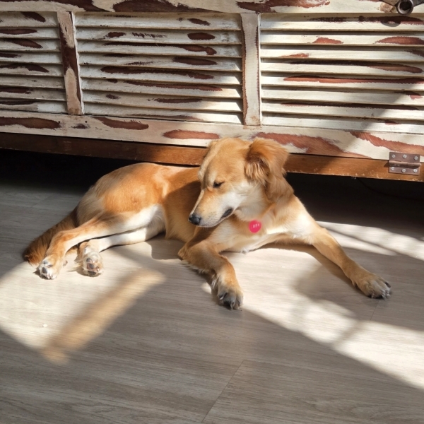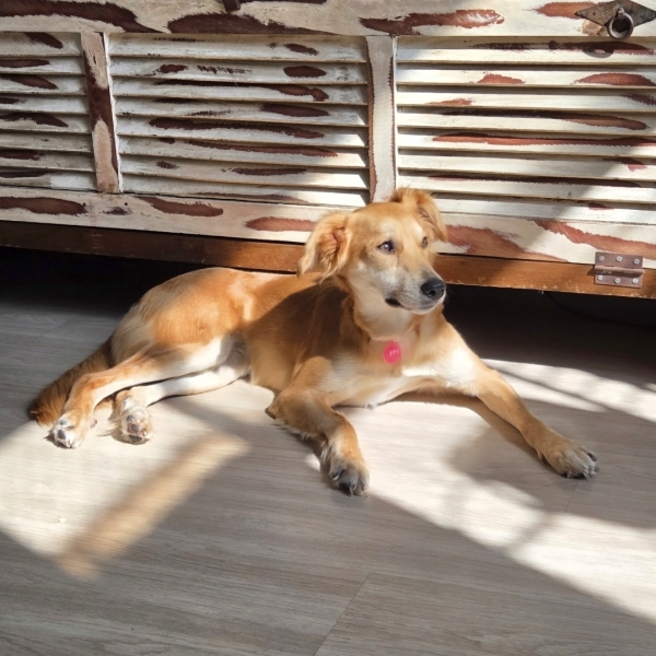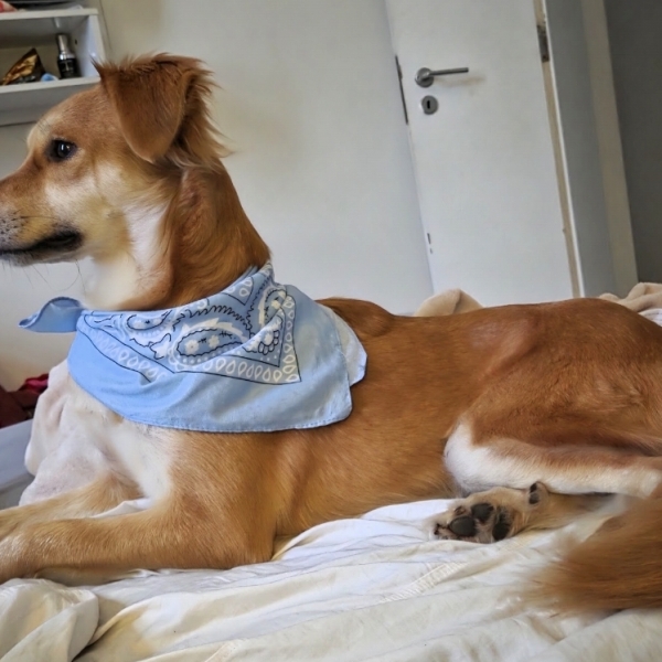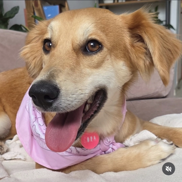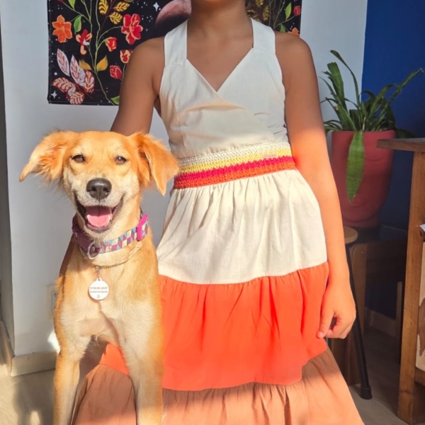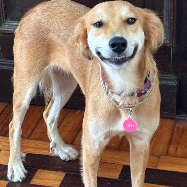 Cora é uma pet que foi resgatada e levada para um abrigo, onde viveu aproximadamente 1 ano. Adotamos ela em outubro de 2025. Ela é extremamente dócil, ama animais e pessoas. E é muito sorridente