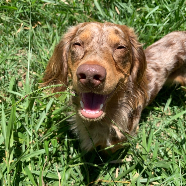 Dachshund macho, pelo longo arlequim chocolate!!! Muito dócil e calmo.… Ver el perfil.