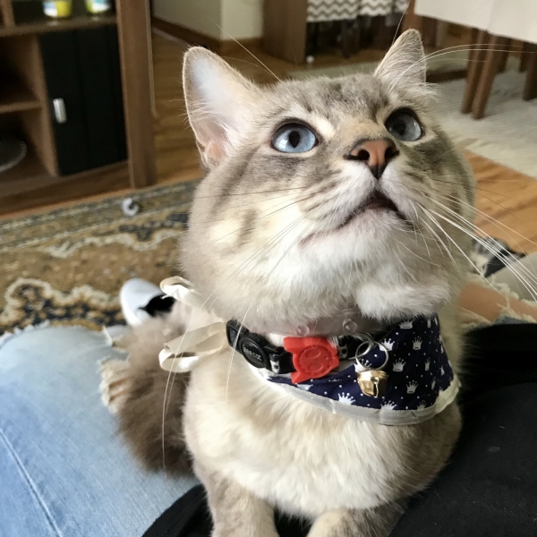 Ele é um gato muito carinhoso e companheiro, quer carinho e colo o tempo todo e fica me seguindo pra qualquer lugar que eu vou. Gosta de brincar, mas ao mesmo tempo é um gato muito tranquilo, não faz bagunça e nem sujeira. É muito simpatico com pessoas que ele não conhece, vai no colo e fica pedindo carinho! É obediente, me obedecendo quando falo “não” ou “fica”. E além disso tudo, é muito fotogênico e sabe passear de coleirinha!