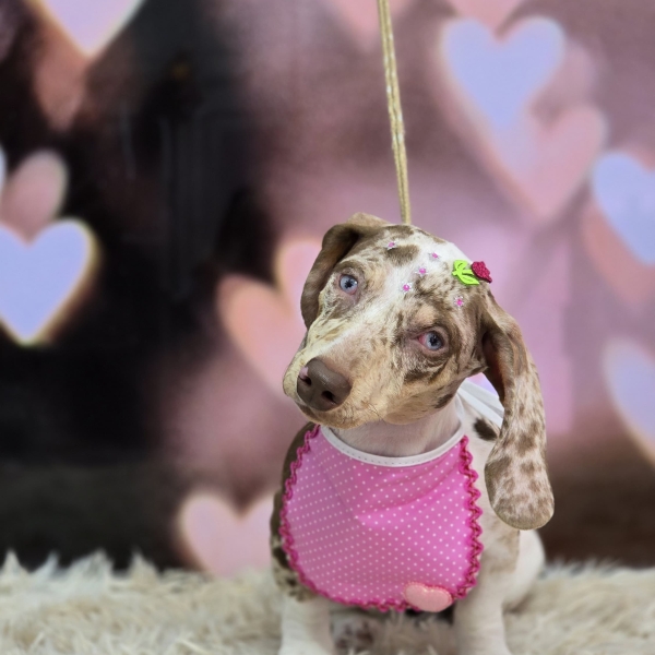Com seu olhar doce e o pelo Merle que a torna única, ela conquista corações por onde passa. Carinhosa, brincalhona e cheia de charme, é o tipo de cachorrinha que transforma qualquer momento em uma cena de ternura.